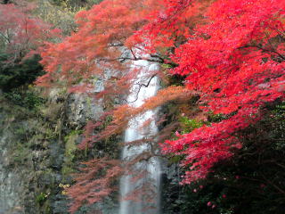 阪急箕面駅から箕面滝道を歩くこと約40分ほどで着くのが日本の滝百選にも選ばれている箕面滝。そこに着くまでの道のりはもみじ並木となっており、秋の時期は素晴らしい紅葉が楽しめます。道中にはもみじの葉を揚げたものも売っているので食してみてはいかがでしょう。