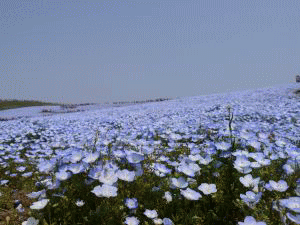 ひたちなか市にある国営ひたち海浜公園では、春になるとみはらしの丘一帯にネモフィラの花が咲き誇ります。その光景は、まさに絶景です。